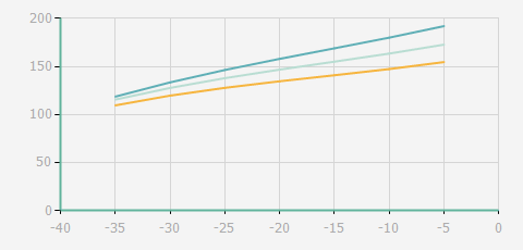 | 蒸發(fā)溫度 | 制冷量+/-5% | 能耗+/-5% | 現在能效+/-5% | 氣體流速+/-5% | 能效+/-7% | ||||