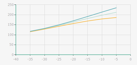 | 蒸發溫度 | 制冷量+/-5% | 能耗+/-5% | 現在能效+/-5% | 能效+/-7% | ||||