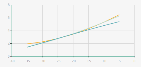 | 蒸發(fā)溫度 | 制冷量+/-5% | 能耗+/-5% | 現(xiàn)在能效+/-5% | 氣體流速+/-5% | 能效+/-7% | ||||