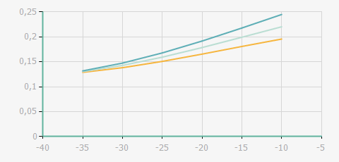 | 蒸發(fā)溫度 | 制冷量+/-5% | 能耗+/-5% | 現在能效+/-5% | 氣體流速+/-5% | 能效+/-7% | ||||