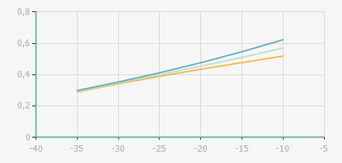| 蒸發(fā)溫度 | 制冷量+/-5% | 能耗+/-5% | 現(xiàn)在能效+/-5% | 氣體流速+/-5% | 能效+/-7% | ||||