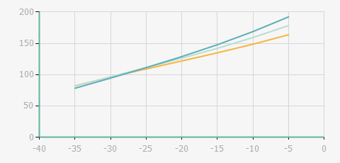 | 蒸發溫度 | 制冷量+/-5% | 能耗+/-5% | 現在能效+/-5% | 能效+/-7% | ||||