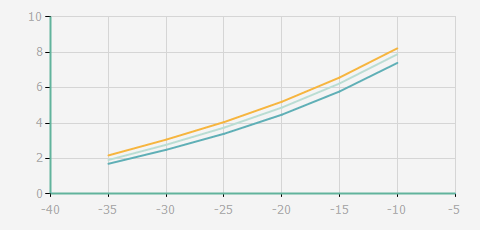 | 蒸發溫度 | 制冷量+/-5% | 能耗+/-5% | 現在能效+/-5% | 氣體流速+/-5% | 能效+/-7% | ||||