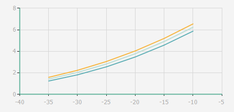 | 蒸發溫度 | 制冷量+/-5% | 能耗+/-5% | 現在能效+/-5% | 能效+/-7% | ||||